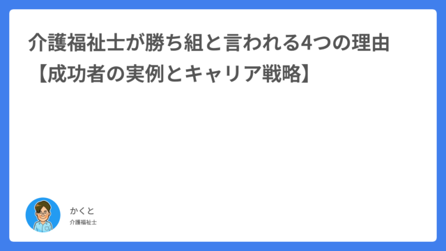 関連記事勝ち組介護福祉士になる方法!年収600万の転職成功者(女性)に取材
