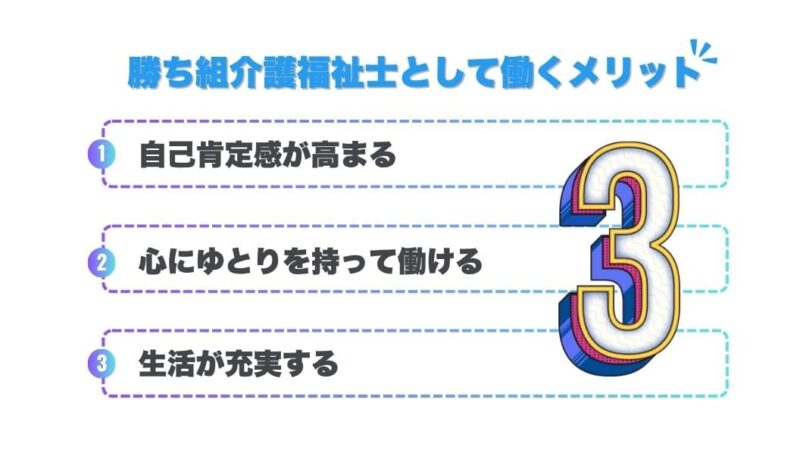 勝ち組介護福祉士として働くと、以下のメリットがあります。