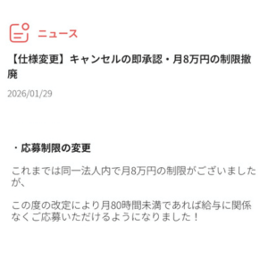 Ucareやカイテクなど他アプリでも制限のあった、同一法人内での月8万円の制限がキャリオス1DAYで撤廃されました。